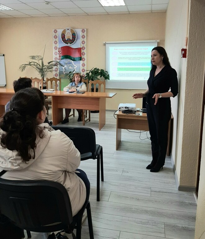 В процессе лекции обозначена значимость психологических последствий созависимого поведения жертвы и помощь, оказываемая Молодечненским РТЦСОН жертвам домашнего насилия.