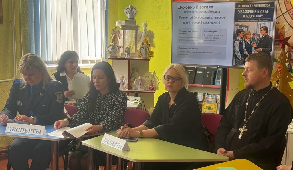 1 апреля 2026 года в областном ресурсном центре по духовно-нравственному воспитанию на базе ГУО «Красненская средняя школа Молодечненского района» состоялось районное мероприятие по профилактике преступлений против половой неприкосновенности несовершеннолетних. Спикерами выступили: психолог Молодечненского РТЦСОН Клинцевич А.В., настоятель храма Покрова Пресвятой Богородицы д. Красное иерей Николай Ходаковский, следователь по особо важным делам Молодечненского РОСК Климук Е.Е.